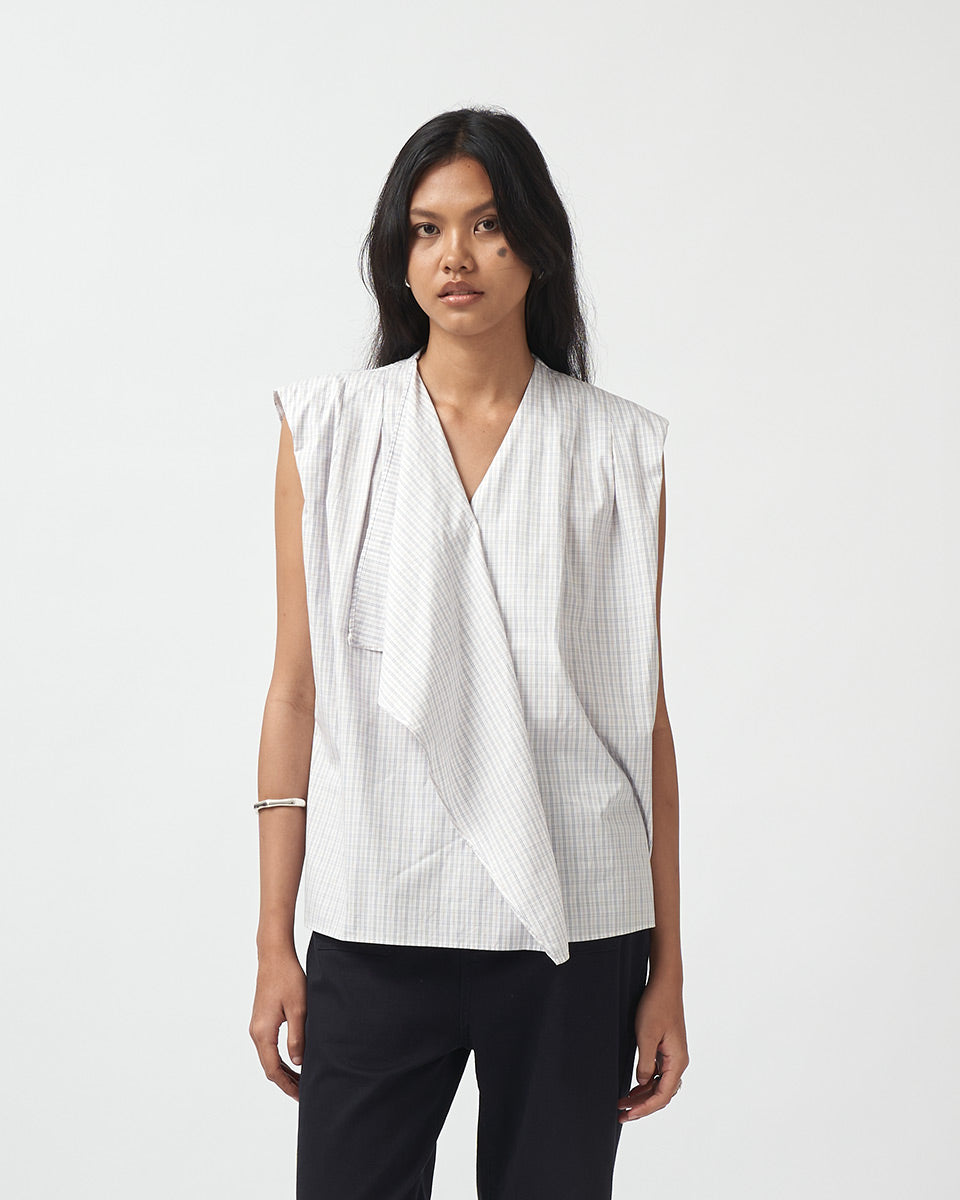 • Deep V-neck top with drape detail
